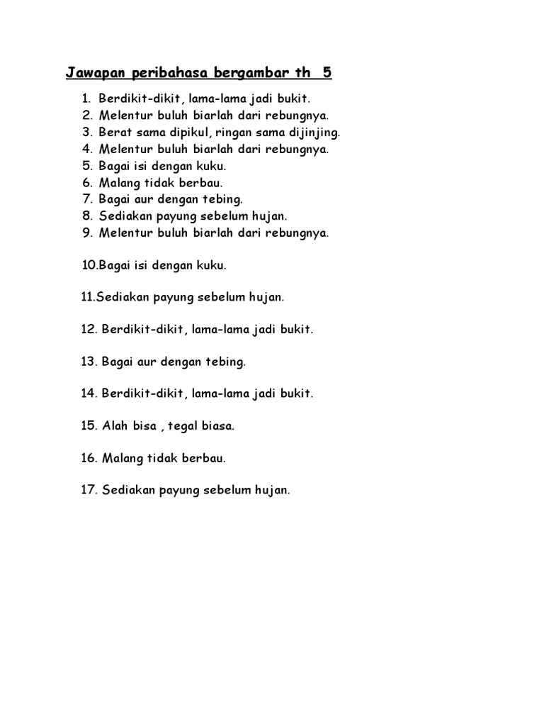 Jawapan Peribahasa Tahun 5 Pdf